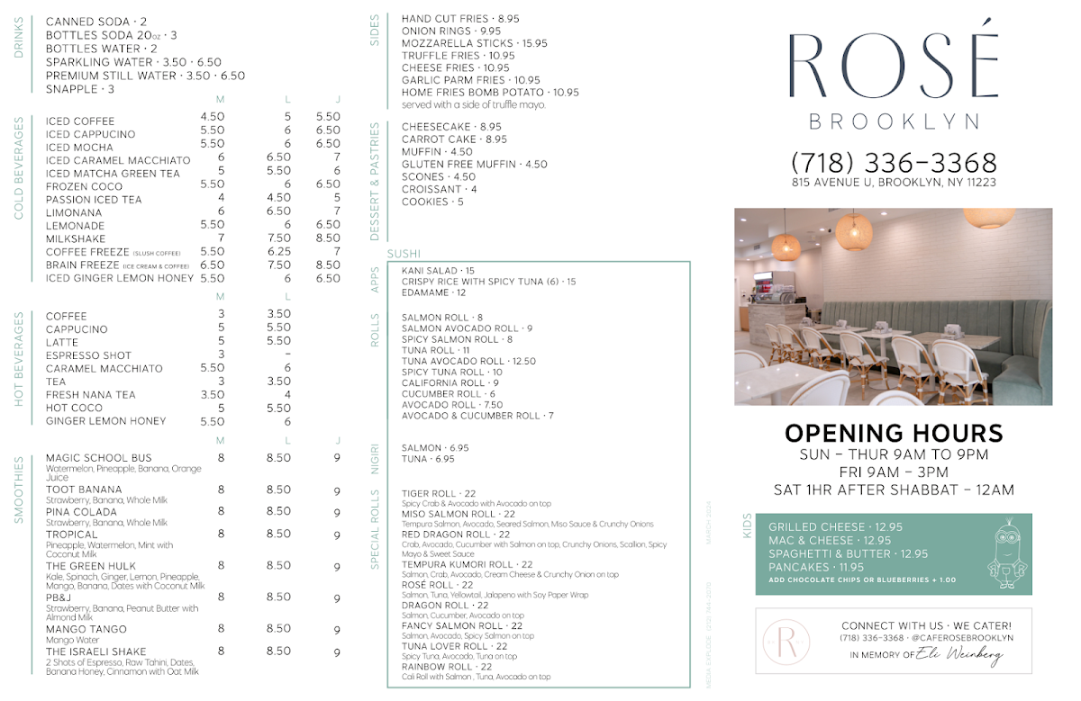 Welcome to Cafe Rose Brooklyn, your new go-to culinary haven nestled at 815 Avenue U, Brooklyn. This charming spot promises a delightful variety of fresh, kosher dairy dishes that cater to every palate.